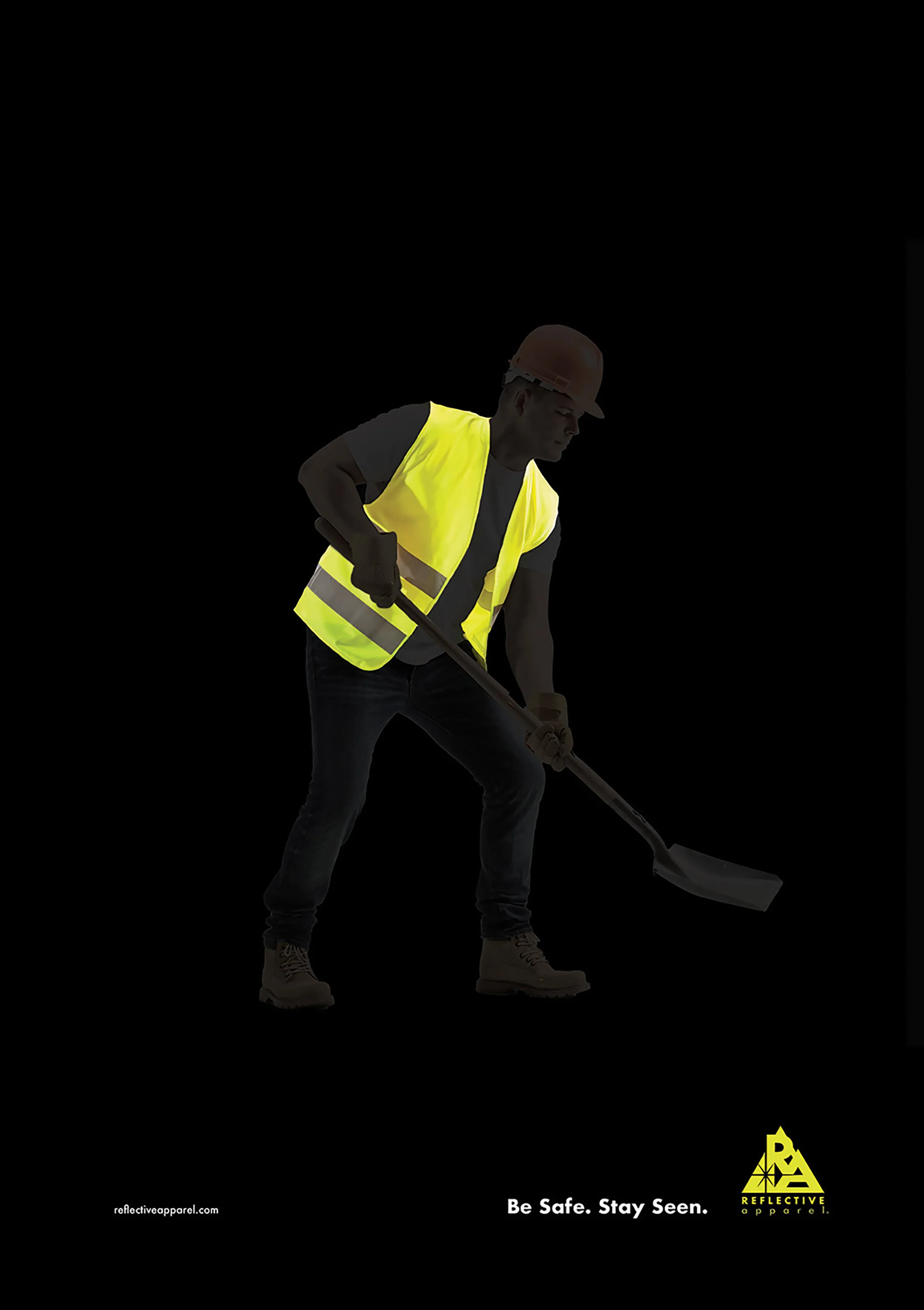 The challenge for this project was to create an advertising series for Reflective Apparel, a company that designs, manufactures, and supplies high-visibility safety clothing for low-light environments.
