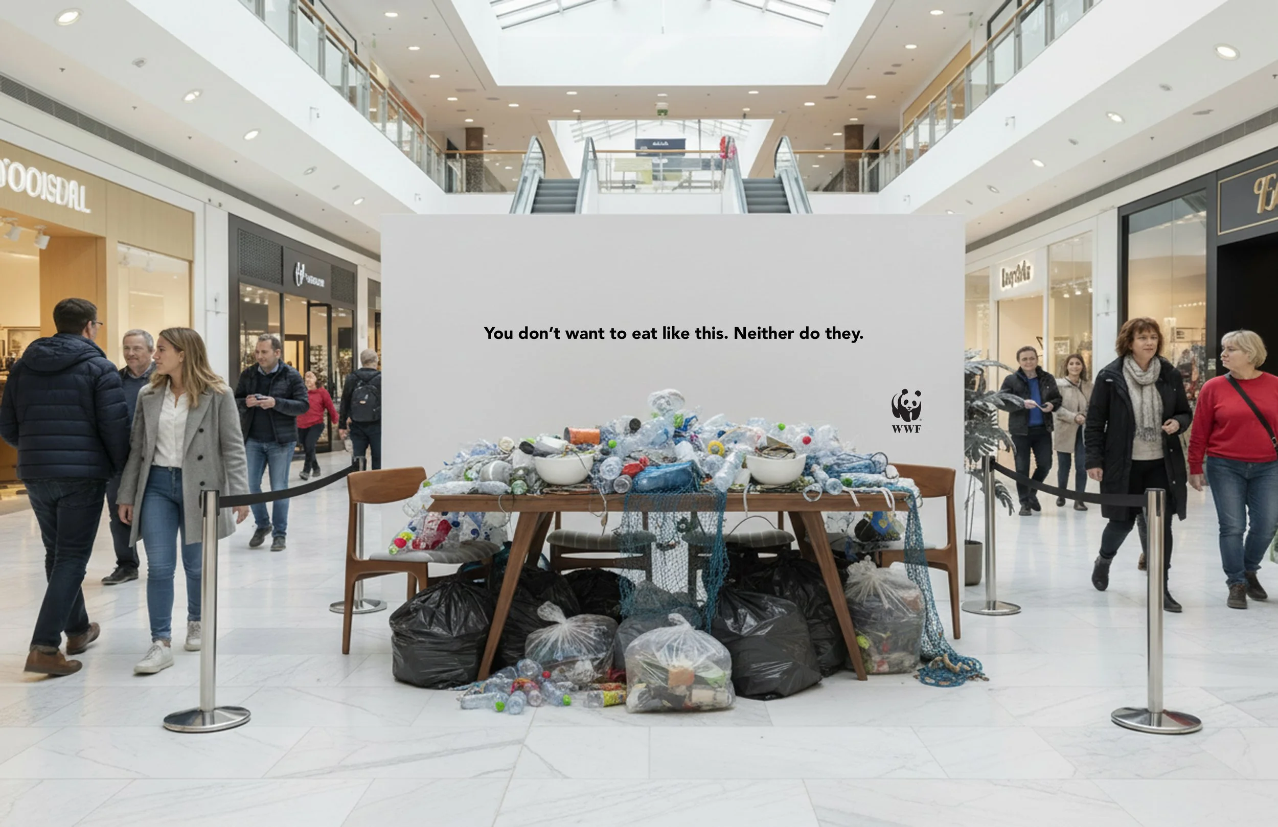 I came up with the idea of turning an ordinary storefront window into a provoking conversation about pollution and its effects on habitats. Rather than promoting a product, the installation behind the glass window showcased an urgent message about wildlife conservation. By mimicking the style of a typical street corner shop, shoppers would automatically look through the window, only to be confronted by trash. This guerrilla strategy allowed the message to exist in a public, everyday space, making the issue feel relevant and personal.